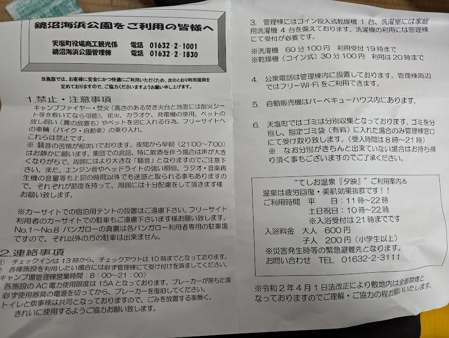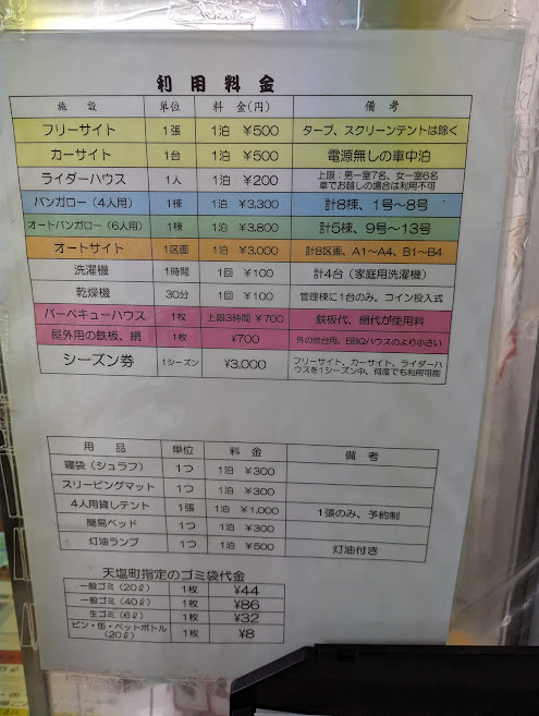 あとサイトに生えている草の丈が伸びていて、雨が降ったあとだとズボンのすそがびしょびしょになります。
